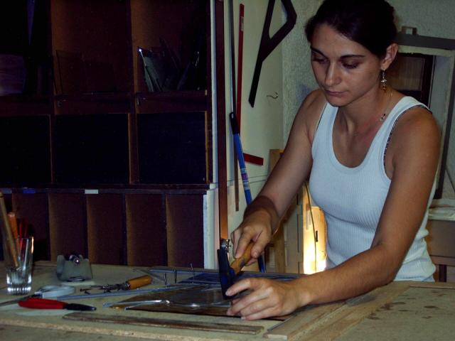 After training with a master glassmaker and graduating in “Art and Techniques of Stained Glass”, I worked with him for a few years. I did an additional training in greyish painting, essential for the restoration of stained glass windows, and in fusing, (glass fusion), to bring a complement in my creations.